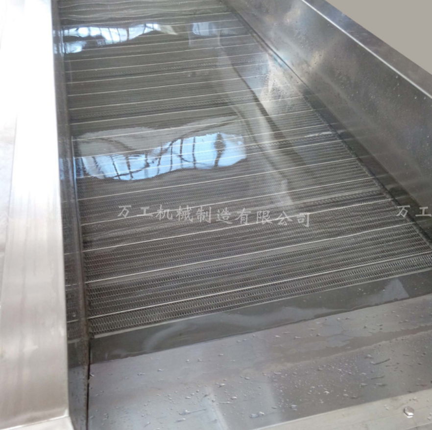 通過高壓旋氣泵使水發(fā)生翻滾、“沸騰”,使物料表面的塵土、泥沙迅速脫離主體,通過不銹鋼網(wǎng)帶,將清洗后的物料輸入到下道工序,在出料端上部裝有多個扇形噴嘴,對蔬菜進行二次清洗,達到良好的清洗效果。整體采用優(yōu)良不銹鋼制作,用戶可根據(jù)工藝要求任意調(diào)整網(wǎng)帶速度,從而使被清洗物得到徹底清洗。
