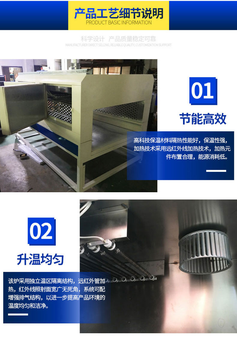 【產(chǎn)品優(yōu)勢】:智能操控,節(jié)能省電,紅外線烘烤,高溫烘烤,按需定制
