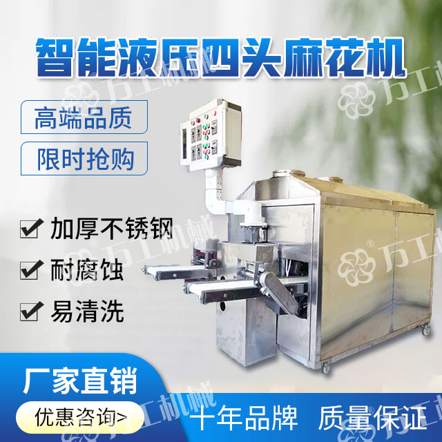 智能液壓四頭麻花機,操作簡單,采用三調(diào)速結(jié)構(gòu),生產(chǎn)時將和好的面團放入機器內(nèi),在靜壓推面器的作用下經(jīng)模具出條后,通過模具的旋轉(zhuǎn)自動上勁挽花,再由延時切段機自由控制麻花的長短,產(chǎn)品花形美觀漂亮,高效節(jié)能、安全衛(wèi)生、無噪音無污染,極大的提供高了生產(chǎn)效率和產(chǎn)品質(zhì)量。